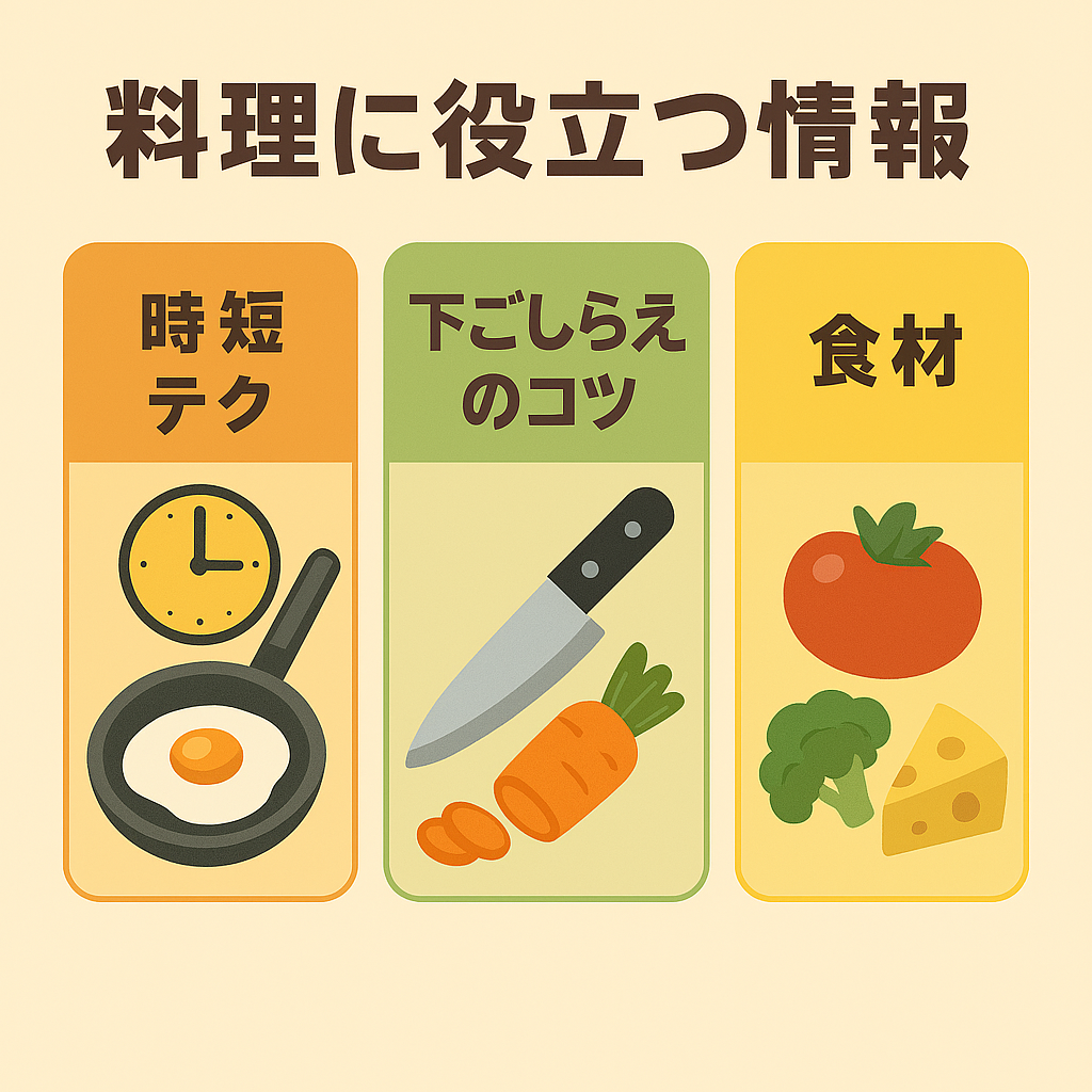 忙しい毎日の中で「早く・かんたん・栄養満点」を叶えるためのキーワードを、**【調理法・食材・ツール】**の3つの切り口で整理しました。